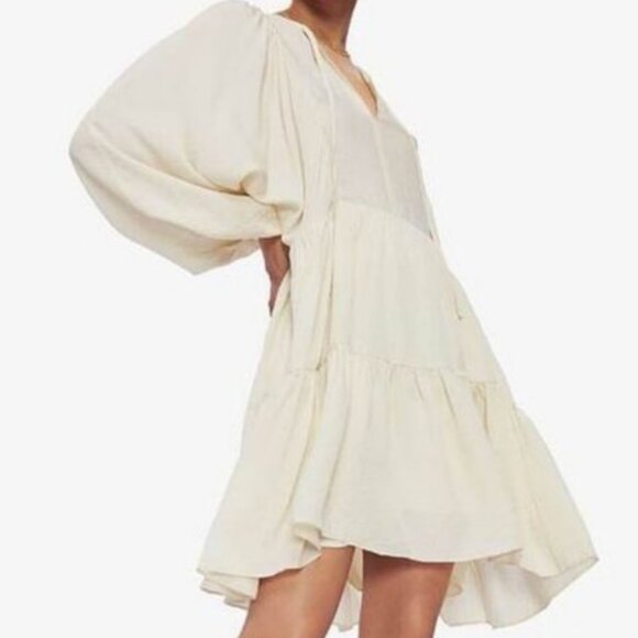 Loose flowy fit with billowed sleeves and a flouncy skirt