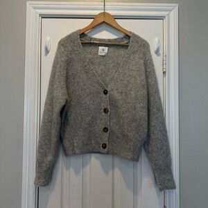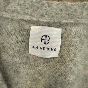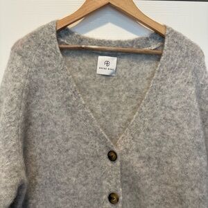 Anine Bing Mason Cropped Mohair Blend Cardigan Grey Minimalist Quiet Luxury Sz L