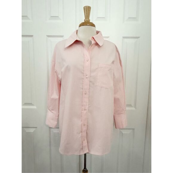 Anine Bing Mika Light Pink 3/4 Sleeve Collared Button Down Shirt Size Small