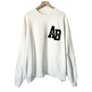 Anine Bing Miles Cotton Crewneck Sweatshirt in White. Great used condition with the "A" missing on back logo near collar. Size Large.