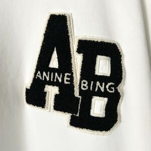 Anine Bing Miles Cotton Crewneck Sweatshirt in White Size Large Patch Logo