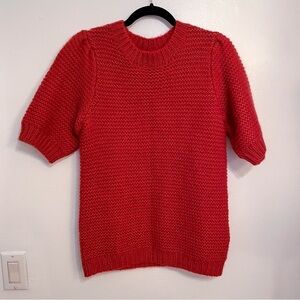 Anine Bing Nicolette Puff-Sleeve Pullover Kid Mohair/Wool Knit Sweater in Rust. Women's Size Small. New without tags. Kid mohair/wool blend, chuck knit, short puff-sleeves, crewneck, medium weight. Excellent pre-owned condition, no flaws to note, like new. SRP $350