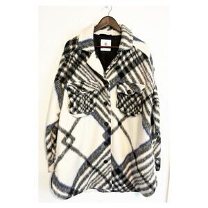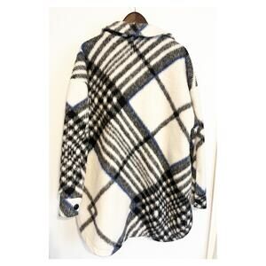 Anine Bing Oakley Plaid Fleee Oversized Coat Jacket White Black Large