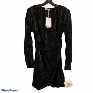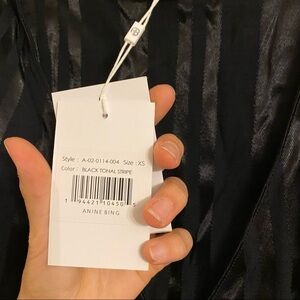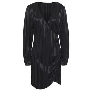 Anine Bing | Penelope Striped Satin Jacquard Mini Wrap Dress Size XS NEW Black