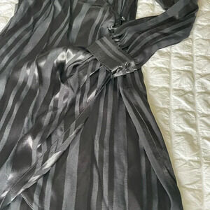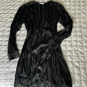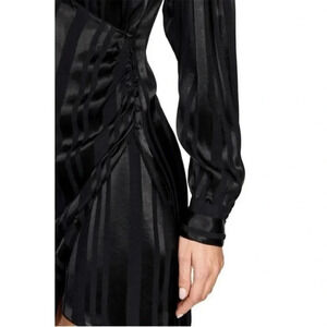 Anine Bing Penelope black tonal stripe side wrap mini dress