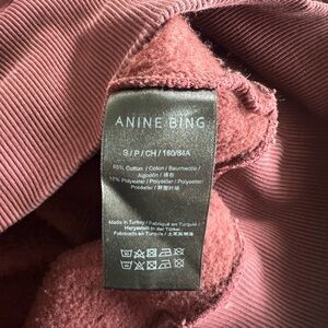 This oversized red sweatshirt by Anine Bing features a classic crew neck and ribbed cuffs, offering a comfortable and relaxed fit. The standout white 'BING' logo across the chest adds a bold touch to this casual top, perfect for everyday wear. - tried on, too small. Same condition as original sellers photos