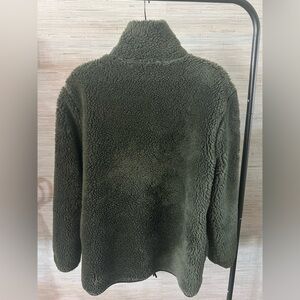 Anine Bing Ryder Green faux Sherpa Jacket, vegan leather trim and pocket