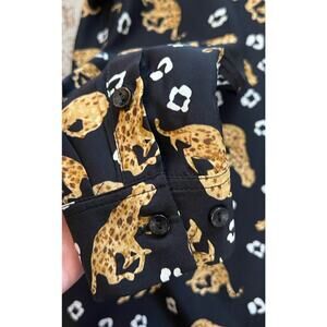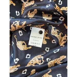 Anine Bing Silk Cheetah Print Long Sleeve Button Up Blouse Top Womens Size XS
