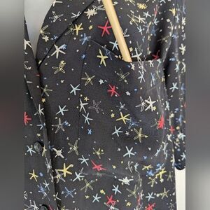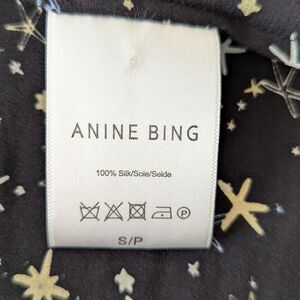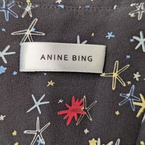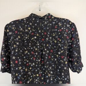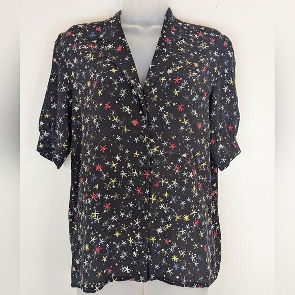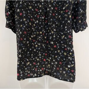 Description: Anine Bing Silk Seastar Preppy Coastal Nautical Whimsigoth Beach Girl Top S, playful starfish pattern throughout, front top slip pocket, button detail at the sleeves