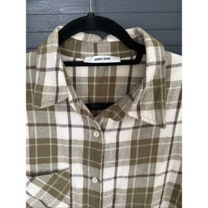Anine Bing green and white plaid flannel button down shirt. 100% cotton. Small. Good preowned condition