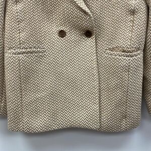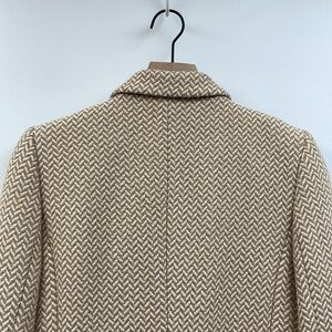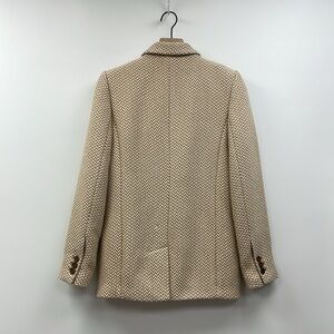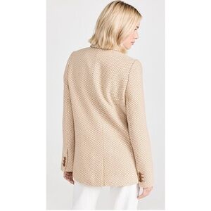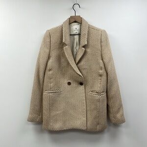 Anine Bing Tweed Fishbone Herringbone Double Breasted Blazer Jacket Tan Small