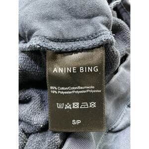 Anine Bing 'Tyler' Navy Lounge Pants Size S: fading throughout, concealed drawstring at rib knit waistband, two-pocket styling, text embroidered at front, rib knit cuffs.
