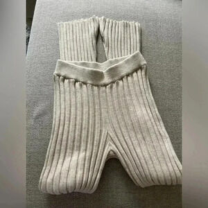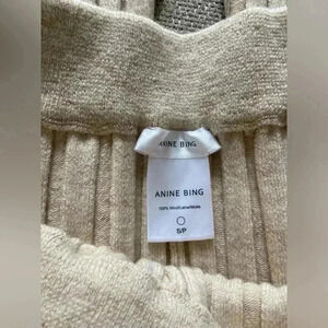 Anine Bing Womens Val Ribbed Knit Wool Pants S Cream High Rise Pull On Flared