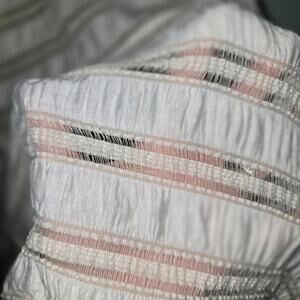 -Lightweight puckered ivory fabric with sheer lace stripe insets