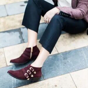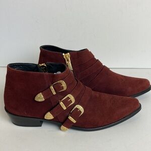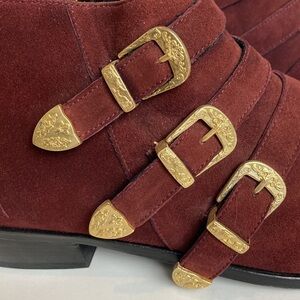 Anine Bing Western Emma Boots Burgundy Gold Triple Buckle Luxury Cowboy Witchy