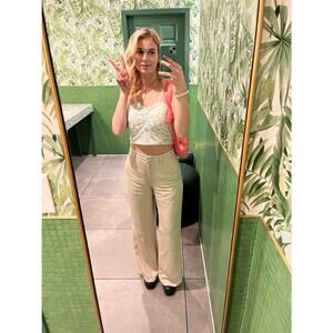 Anine Bing Women's Off-White Wide-Leg Front Zipper Lyra Trousers Pants Size 34