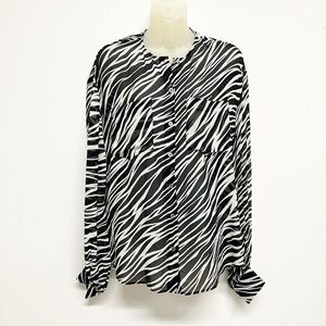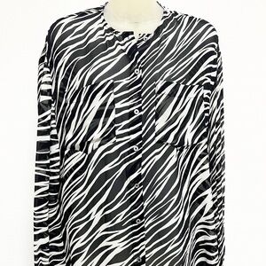 Anine Bing Womens Silk Chiffon Zebra Print Long Sleeve Button Arrow Shirt Sz S