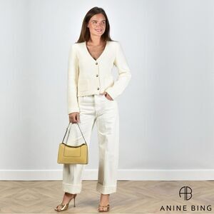 Anine Bing **NWT** Anitta V Neck Woven Jacket in Ivory / White / Cream