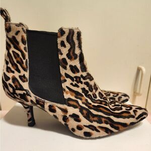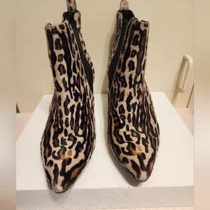 Anine Bing "Stevie" Leopard Calfshair Print Pointy Ankle Boots Sz.9/39 Ret.$449
