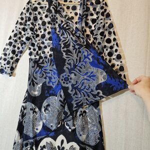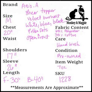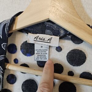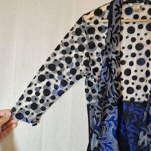 Anis A Cardigan Women Medium Black Blue 3/4 Sleeve Ruffle Fitted Sheer Boho