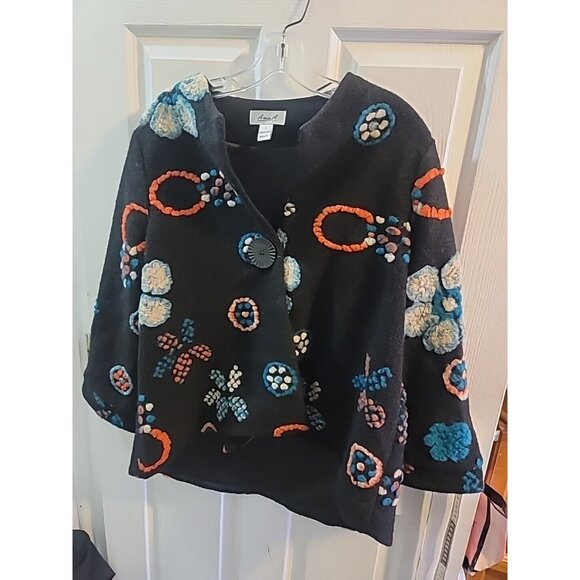Anis A Womans Boho Embroidered 60s Style Wool Jacket Coat. Fully Line. Small