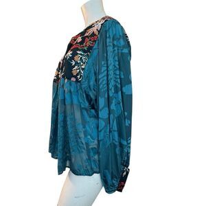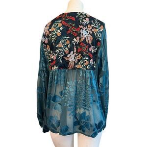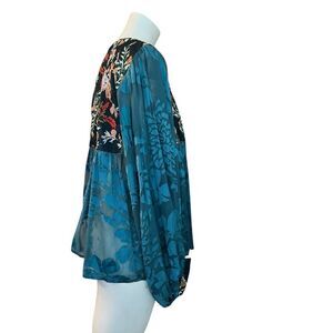 Anis A Ladies Medium Heavy Embroidered Floral Green Semi Sheer Cardigan Oversize