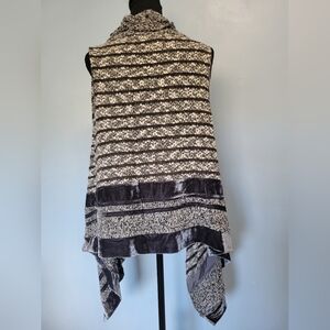 Anis.A Patchwork Boho Drape Cardigan Vest Grey Large