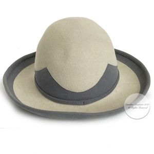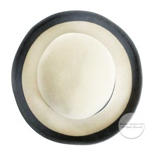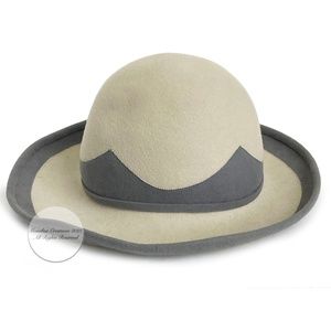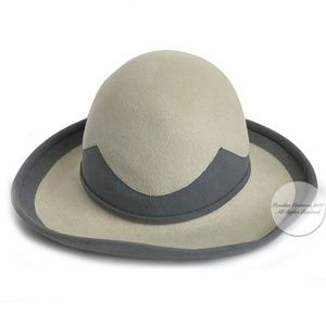 Anita Pineault Canada Hat Wide Brim Wool Felt Vanilla Gray Abstract Vintage 80s