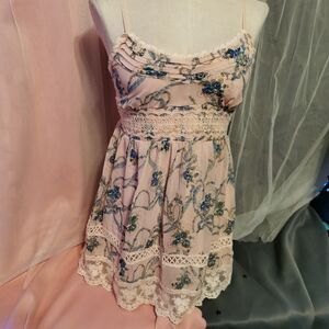 Ank Rouge Size Small Pink Camisole Mini Dress Cami Lace Summer Party Pastel Y2K