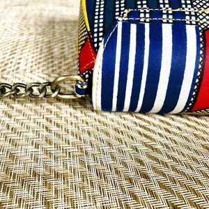 This BESPOKE crossbody bag is functional, colourful and vibrant. It was made in West Africa. The bag not only looks good it will also exceed your expectations in terms of quality and durability . It was designed and tailored to be as functional as it is beautiful. Can be worn crossbody or as a clutch by fitting the chain inside. The bag is made with quality African Print cotton, rustic metal chains and fasteners that were sourced from West African markets in Ghana and Nigeria.