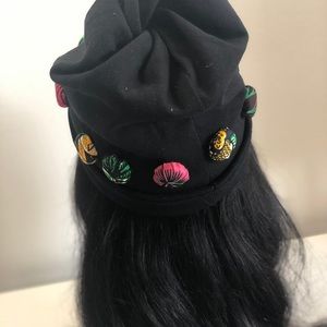 This beanie has a unique twist style on the top with lovely ankara button designs