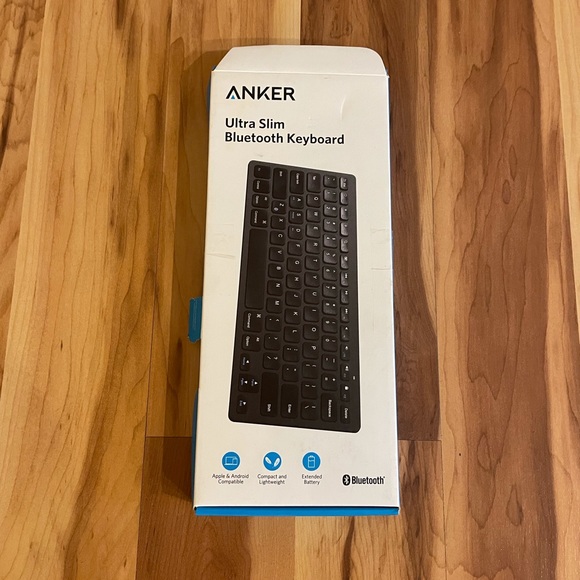Anker bluetooth keyboard. Extremely reliable and handy wireless keyboard, runs with 2 AA batteries. Like new in box.