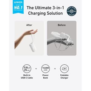 Get ready to power up your devices with this fantastic Anker Nano 3-in-1 Portable Charger! This power bank boasts a 10000mAh capacity and a 30W USB-C foldable plug, making it perfect for travel, work, or just keeping your devices charged on the go.
