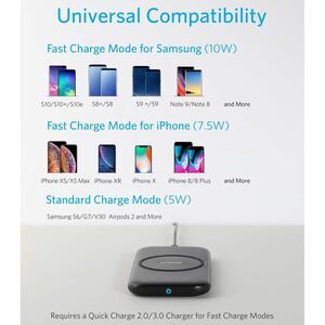 -PowerWave Base Pad is compatible with all Qi-enabled devices including iPhone 11, Samsung Galaxy S10, & AirPods wireless charging cases