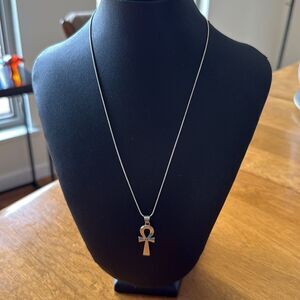 In excellent condition. Pendant measures 1.25” x 5/8” and the necklace is 18”. Both are hallmarked 925.