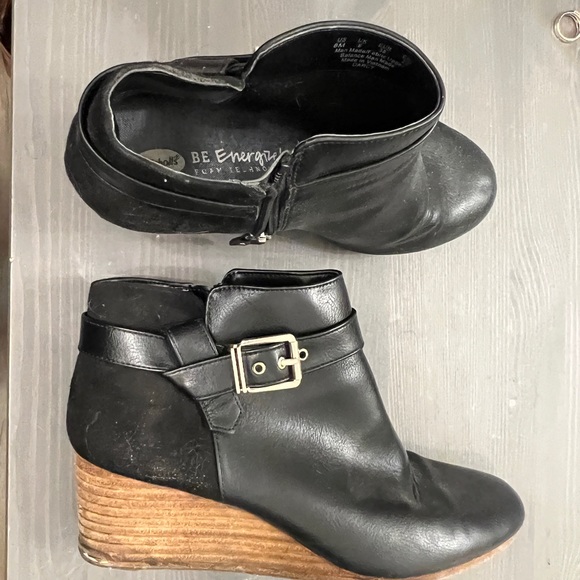 Worn short black boot.