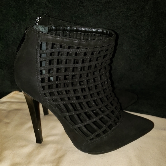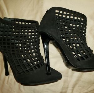 SCHUTZ Black Ankle suede Booties w/ back zipper closer. 2 1/2 inch. Worn once and Great condition! Leather Sole.. Made in Brazil.