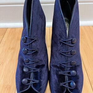 IMPO STRETCH Vassar ankle booties velvet peep toe loop close electric blue navy new no box or tags
