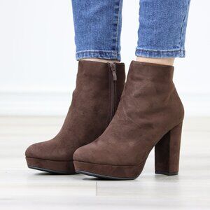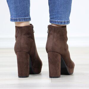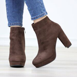 Ankle Booties Block Heeled Boots Platform Brown Suede