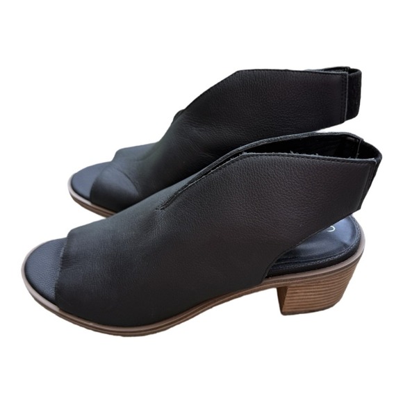 Ankle Booties Sole Society Open Toe Black Leather Minimalist Clean Girl Size 8.5