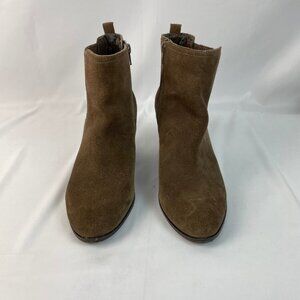 Suede ankle boots, some spots and scuffing, and peeling of inside lining