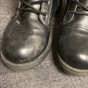 Ankle Boots, Girls 12, black w/ leopard print trim. Brand is Sugar. Fabric & made made materials. These are super cute used boots. I was so sad when our child outgrew them! There is normal scuffing for a used boot with plenty of wear left to keep little feet warm in style!