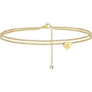 Ankle Bracelets for Women, 14K Gold Plated Dainty Layered Heart Initial Anklets
