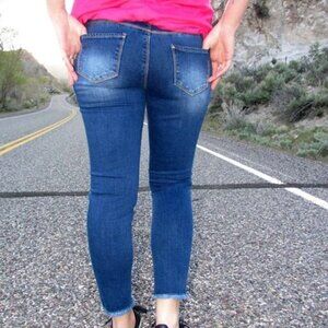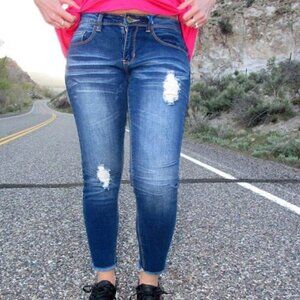 Ankle Fringe Jeans Denim Blue Distressed Raw Hem 0