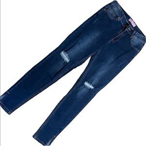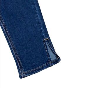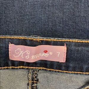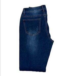 K’s More ankle length jeans with short slit up the ankle, torn/distressed at the knees and faded detail on the front and on the butt below pocket. 29” inseam . Excellent condition