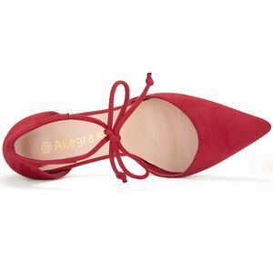 Ankle Tie Chunky Heel Red Pointed Toe Dress Pumps