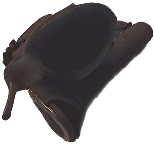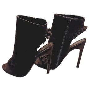 Sophisticated Vegan Faux Suede Ankle Wrap Zip Close Goth Black Elegant Booties Ankle Boots Sleek 4" Stelletto Heels W 8 Peep Toe Decorative Ruffle Statement Piece