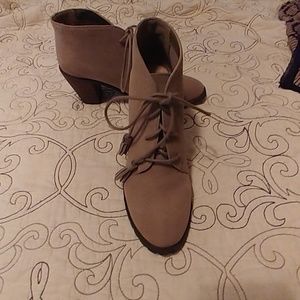 Taupe color ankle booties only work once. Very cute on and fit true to size!