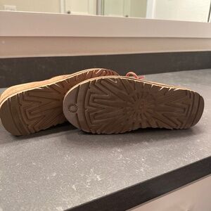 Ugg pink Ugg lettering on tan suede. Lace up. Very clean. Perfect condition.