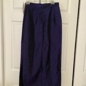 Satin like navy blue long skirt. Formal wear new with tags. Has slit on left side